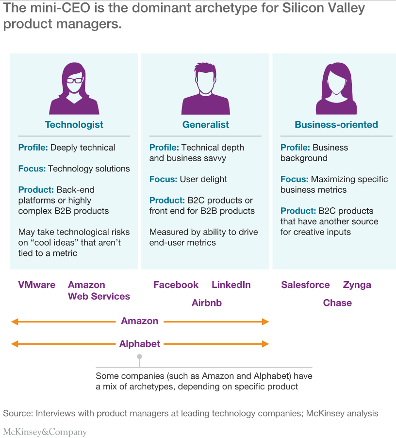 그리고 결국 좋은 기준이 되는 글을 하나 찾았는데 바로 이 글이다!! 맥킨지에서 2017년에 실리콘밸리의 Product Manager들의 유형과 역량을 조사한 글인데, 지금 읽어봐도 고개가 끄덕여 지는 부분이 있다.