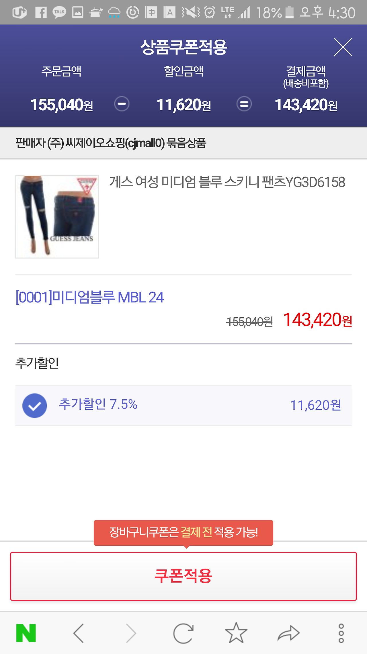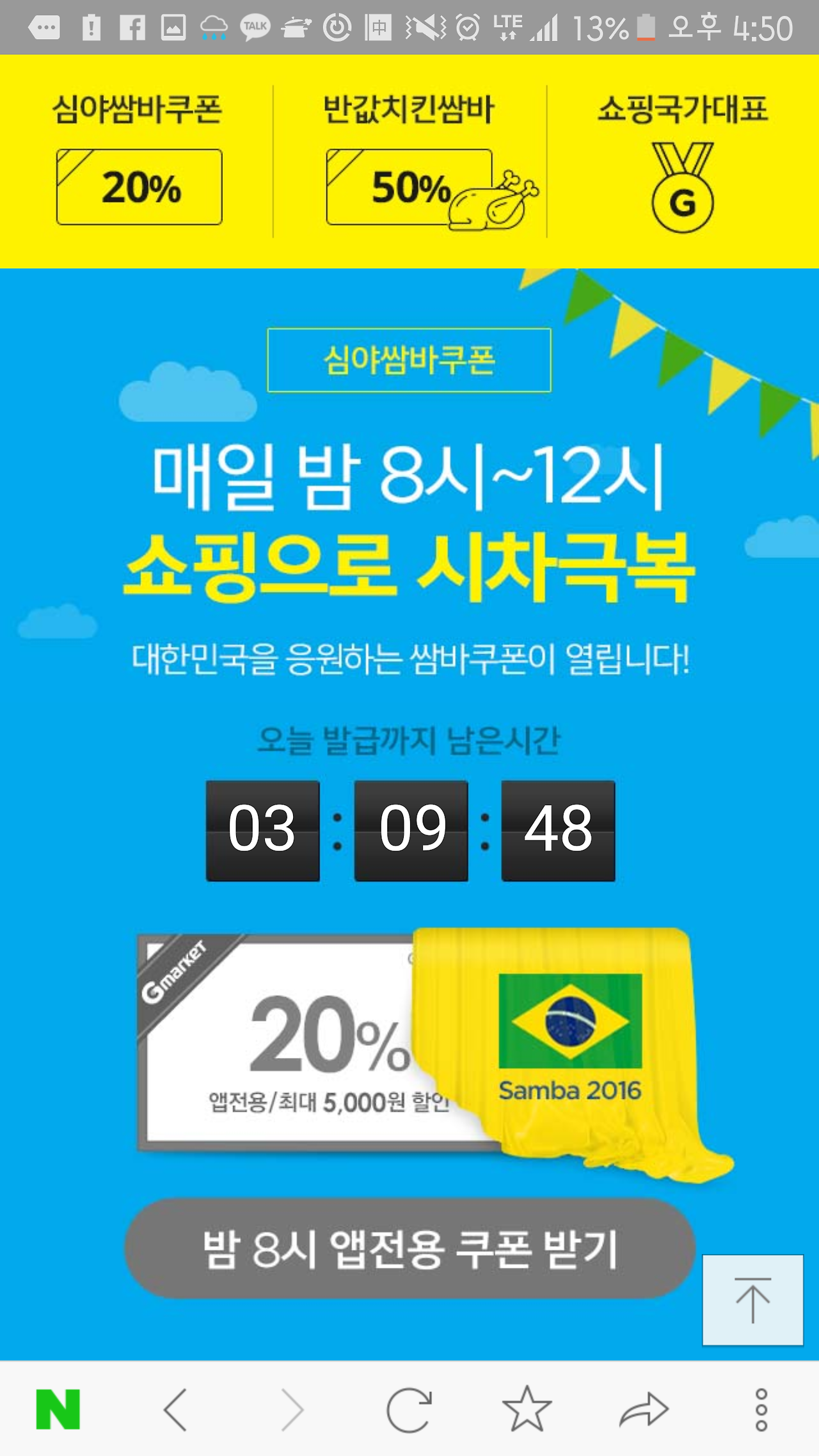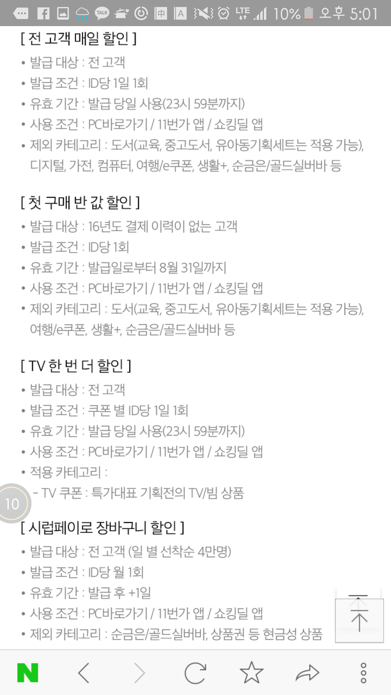 두 사이트 모두 네이버경로에 대한 추가 쿠폰을 제공하고 있는데 방식은 다르다.