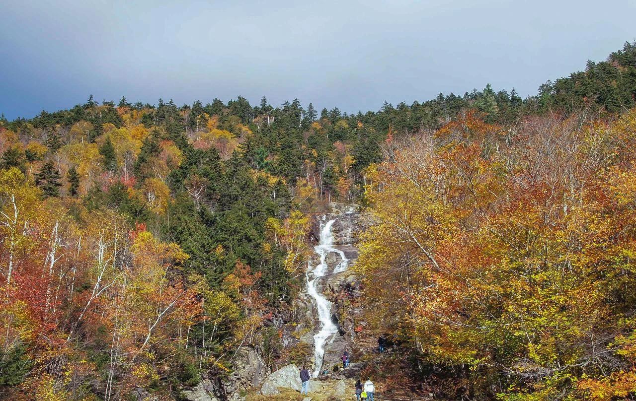 내가 방문했던 시점에는 큰 비가 지나간 다음이라 단풍이 많이 떨어져 약간은 아쉬웠다. 그런데 화이트 마운틴 국유림의 크기가 큰만큼, 그 안에서도 단풍의 상태가 약간씩 달랐다. 아래 사진은 Wood stock 근처의 Flume Gorege였는데, 화이트 마운틴 국유림에서도 상당히 아래쪽에 해당하는 곳이다. 처음 이곳에 도착해서 단풍을 보고 와 딱 시기를 맞췄구나 엄청 좋아했는데, 위로 올라갈수록 나뭇잎이 이미 떨어져서 아쉬웠다. 이럴 줄 알았다면 플럼 고지에서 트레일을 걸으며 단풍 구경을 하는 건데..!