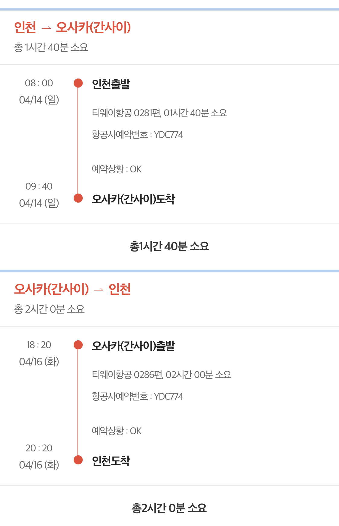 먼저 항공편을 알아보면서 일정을 정해 보았다. 여행 멤버는 70대가 대부분이니 일정은 너무 길어도, 너무 빡빡해도 안될 것 같았다. 2박 3일이 적당했고 어머니 생신을 둘째 날로 하니 일, 월, 화요일로 일정이 정해졌다. 항공편 중에서 아침 8시에 인천 공항을 출발, 저녁 6시에 간사이 공항을 출발하는 편이 있었다. 짧은 일정에 3일을 꽉 차게 여행할 수 있으니 더 나은 선택지는 없다. 이렇게 일정과 항공편은 정해졌다. 항공권은 일인당 24만 원 정도였다.