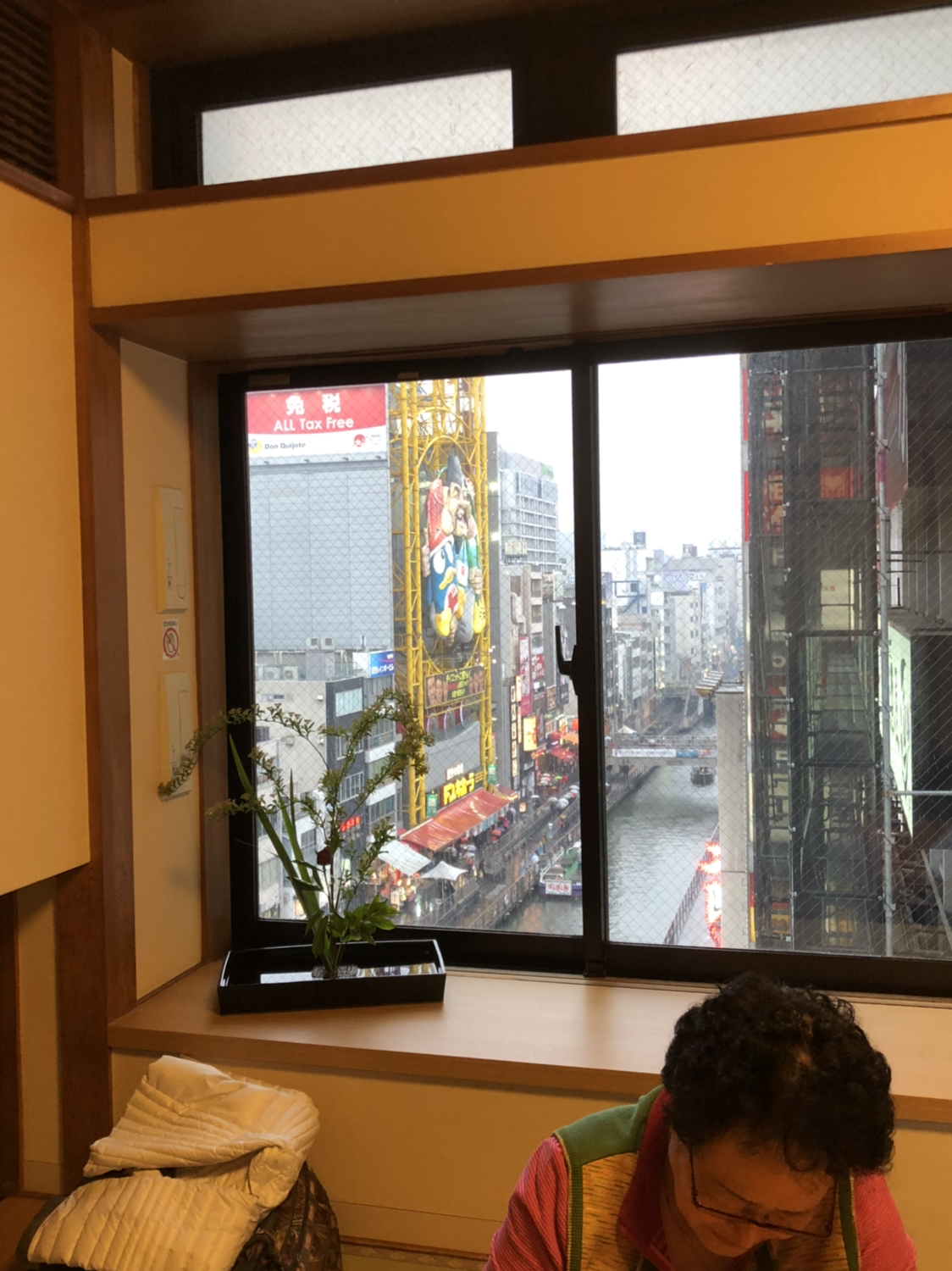 카니도라쿠에 도착하니 3시 20분이다. 구글맵의 경로 탐색으로 짠 일정이 현지에서 칼 같이 실현되었다. 참 좋은 세상. 방은 도톤보리가 훤히 내려다 보이는 곳이었다. 예약 참 잘했다는 말씀들을 들으니 일단 마음이 놓인다. 음식은 예약할 때부터 주문해 두었고, 여섯 가지 요리로 구성된 4,195엔 런치 코스였다.