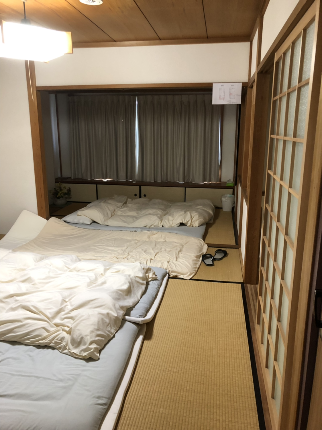 여담으로, 따뜻한 술이 들어가니 출국할 때부터 긴장했던 마음이 스르륵 풀어졌다. 그 바람에 미소시루(된장국)를 바지에 엎어서 잠옷으로 가져간 운동복으로 갈아입어야 했다. 숙소에 도착해서는 바지를 빨리 세탁해 줘야 한다며 어른들의 마음이 매우 조급했다. 다행히 다음날 아침에는 뽀송뽀송하게 마른 바지를 입고 기분 좋게 여행할 수 있었다.