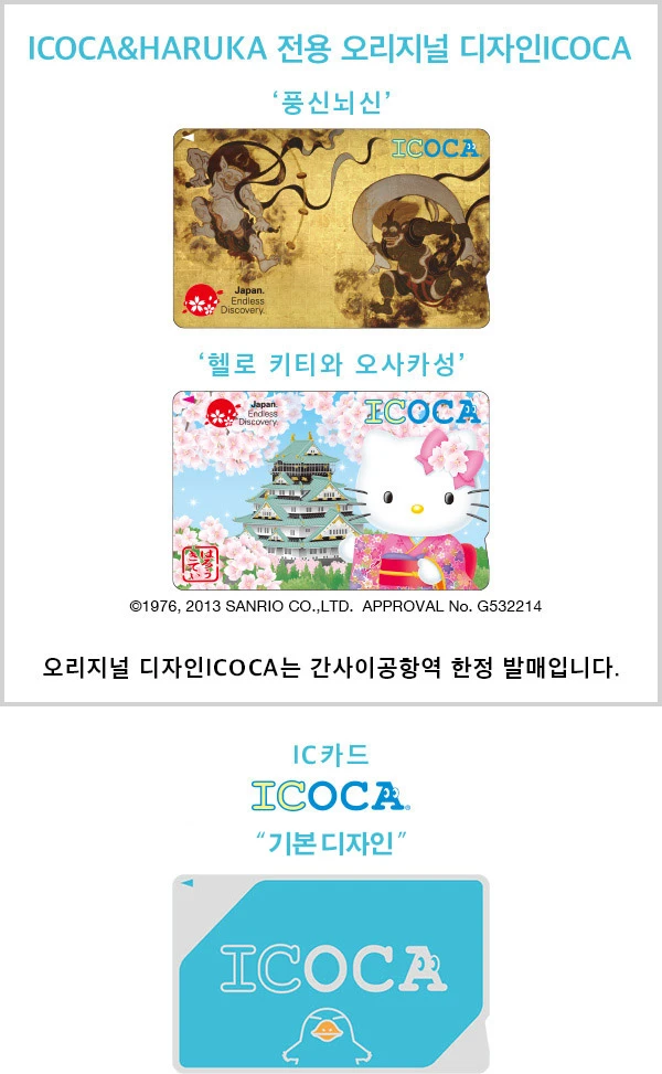 간사이공항역으로 이동, JR(일본 철도) 서일본에서 판매하는 충전식 교통 카드인 ICOCA 카드를 구입했다. 이코카는 "갈까?"라는 뜻의 일본어 발음이다. 3일간 여행하는 동안 대중교통을 이용해야 하는데, 매번 표를 구매하고 모자란 금액을 현금으로 지불하기가 힘들 것 같았다. 1일권과 같은 할인권도 있지만, 그 정도로 혜택을 봐야 할 만큼 많이 탈 계획은 아니니 교통비만큼은 다른 것보다 지불의 편안함을 택했다. 그리고 교통 카드는 다음 여행에서도 충전하면 쓸 수 있으니 기념품으로 가져도 된다. 꼭 다음에도 오셔서 쓸 수 있으면 좋겠다는 마음도 담아 한 장씩 발권해서 나눠 드렸다.