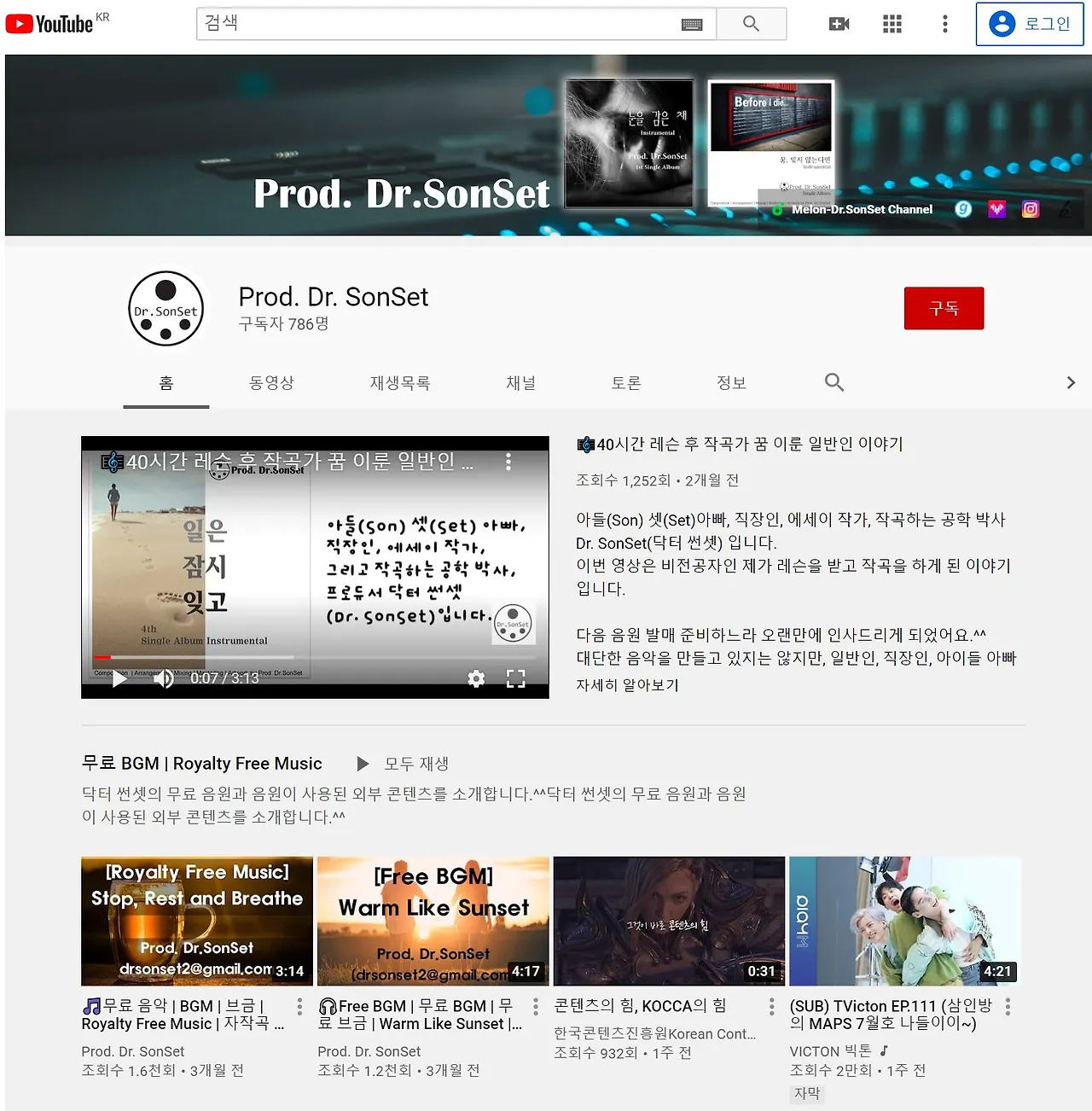 휴식, 정화, 치유, 안정, 사랑... 그런 감정을 담아 음악을 만들고 있고, 음악과 글을 담은 영상을 제작해서 유튜브 채널에서 소개하고 있다. 음원을 사용하고 싶다는 크리에이터들의 요청이 있어 무료 음원도 공유하고 있다. 구독자는 800명에 가까워지고 있고, 음악을 좋아하는 많은 사람들과 소통하는 공간이 되고 있다.