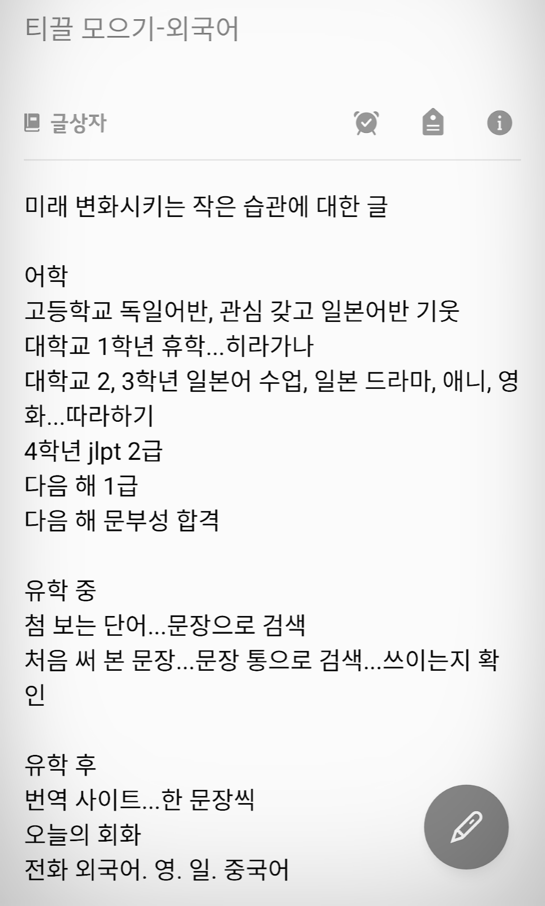 그리고 "외국어 입문에서 국비 유학까지의 십여년, 그 후"는 다음과 같이 여러 번에 걸친 메모를 통해 모은 소재를 정리해서 쓴 것이다.