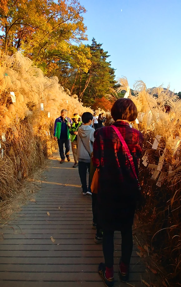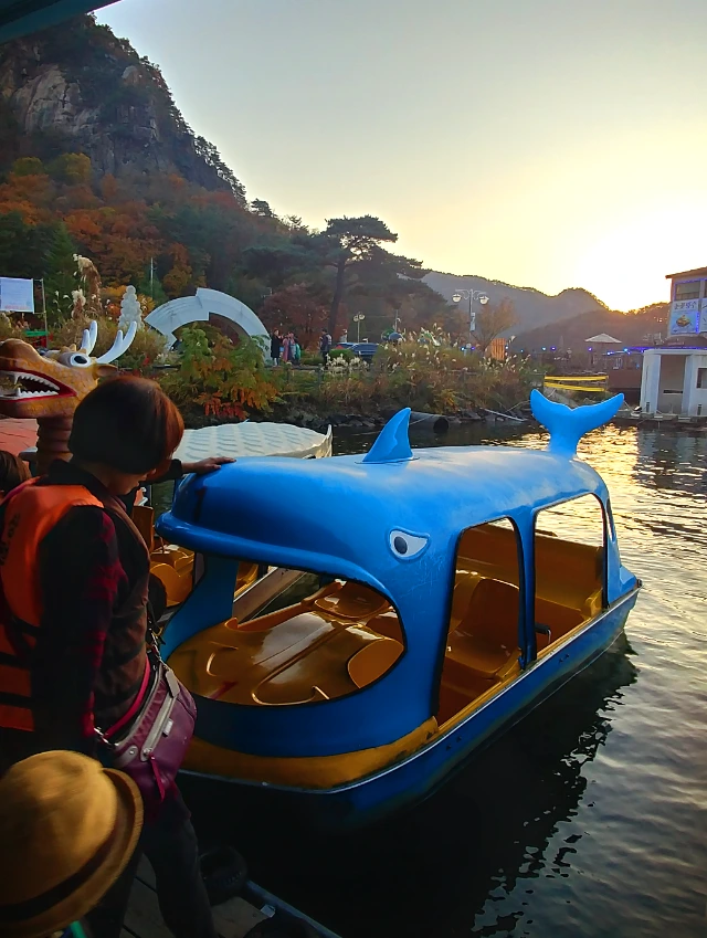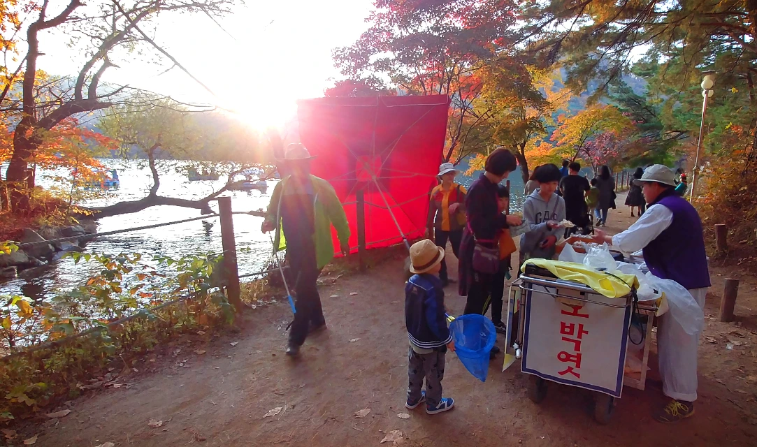 금강산도 식후경이라 그런 건 아니지만, 호수를 만끽하기 전에 제일 먼저 눈에 띈 호박엿부터 입에 물고 호수 둘레길을 걷는다. 우리가 향한 곳은 선착장. 호수의 그림 같은 풍경과 함께 눈에 들어온 오리배를 우리도 타보기로 했다. 억새 축제 중인 호수의 둘레길에 준비되어 있는 억새꽃 길은 덤.