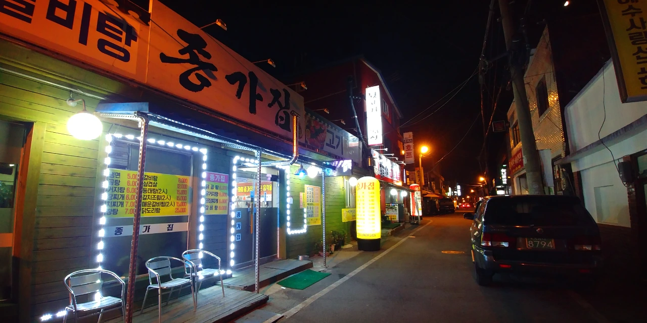원조 이동 갈빗집들과는 상관없는 음식점들이, 도로에서 한 겹 안으로 들어간 골목 안에 늘어서 있다. 마음이 편안하고 뭐든지 먹을 수 있을 것 같은 안도감이 느껴진다. 방금 관통한 가게 사장님께는 미안하지만 다른 가게에 자리를 잡고 기호대로 국밥, 갈비탕을 시킨다. 주인아주머니께 묵을 곳을 알아보니, 바로 옆 여관을 소개하여 주신다. 작은 방이 단 돈 3만 원.