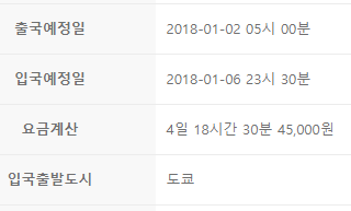 출국하는 날 5시 5분에 공항에 도착, 귀국하는 날 비행 지연으로 밤 12시 반에 도착하여 추가 요금은 15,000원이 발생했고 주차에 총 6만 원이 들었다. 아이들은 추위에 떨며 기다리는 시간 없이 출국과 귀국을 할 수 있었다.