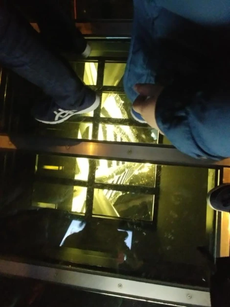 아이들은 잠깐 신기한 것 말고는 할 것이 없으니 인파 속에서 금방 지쳐버렸다. 그나마 언제 가냐는 질문이 잠시 멈춘 것은, 유리 바닥을 구경하는 짧은 시간 정도였다. 전망데크에서 아래층으로 내려가 지상으로 가는 엘리베이터를 타기 전, 마지막 이벤트로 마련되어 있는 듯했다.