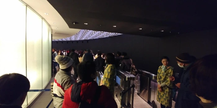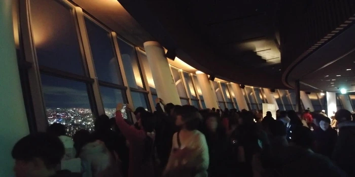 4층 매표소에서 입장권으로 교환하는데 줄을 설 필요가 없었고, 현장 구매의 긴 행렬이 바로 옆에 늘어서 있었다. 전망데크로 올라가는 엘리베이터 역시 줄을 오래 서지는 않았는데, 엘리베이터 속도가 워낙 빨라 많은 인원을 소화해 내고 있었다. 전망데크에 도착하니 유리창문 쪽으로 사람들이 가득하다. 겹겹이 쌓인 사람들이 구경을 하고 사진을 찍고 나면 차례가 돌아온다.