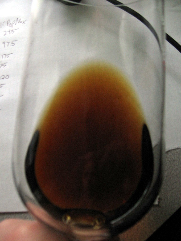 색을 보고, 스왈링(잔 흔들기)하고, 냄새를 맡고, 맛보고, 음미하는 것이다. 이는 “FIve S” 단계라고도 불리는데 보고(See) 스왈링하고(Swirl), 냄새 맡고(Sniff), 홀짝이고(Sip), 음미하는(Savor) 것이다. 이 과정에서 테스터는 투명도, 점성도, 복잡성, 풍부함 등 다양한 요소를 평가해야한다.