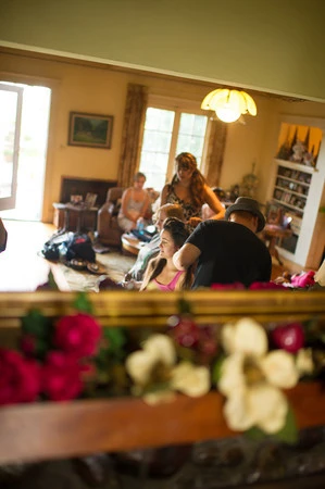 보통 예식 장소를 빌려 웨딩을 하는 경우엔 꽃을 가지고 도착하면 다들 셋업 하느라 바삐 일들을 하는데, 이 웨딩은 아직도 모두 여유여유에 다들 모여 계속 수다 삼매경..