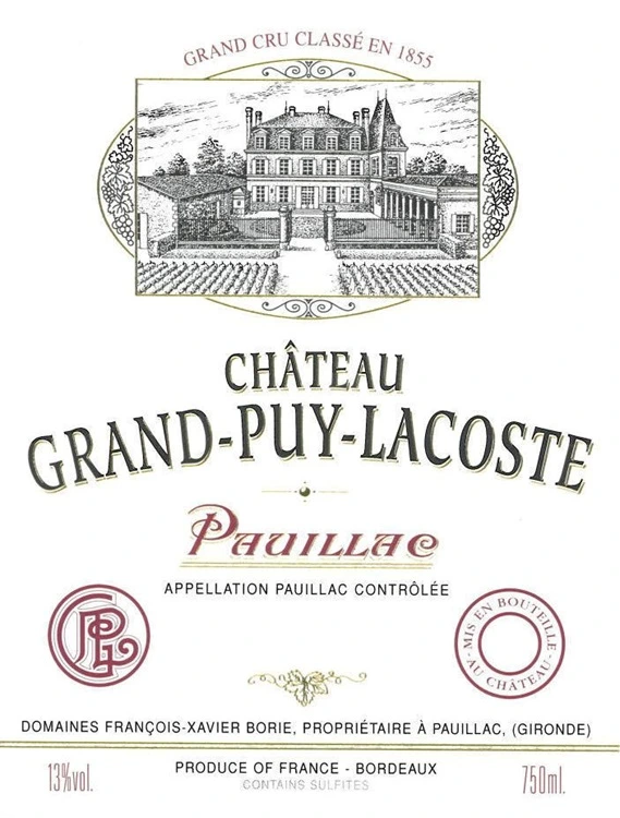 보통 샤토 이름이나 그림 밑에 1급 프르미에 그랑 크루 클라쎄 Premier Grand Cru Classé 라고 쓰여있습니다. 라벨에 Grand Vin 이라는 용어는, 세컨 와인/라벨 second wine 을 생산하는 생산자에게는 그들의 세컨 와인에 비교하여, 이 와인이 세컨 와인이 아닌 그들의 대표 와인이라는 의미로 표기되는 용어로 어떤 와인법 규정에 의한 표시는 아닙니다.