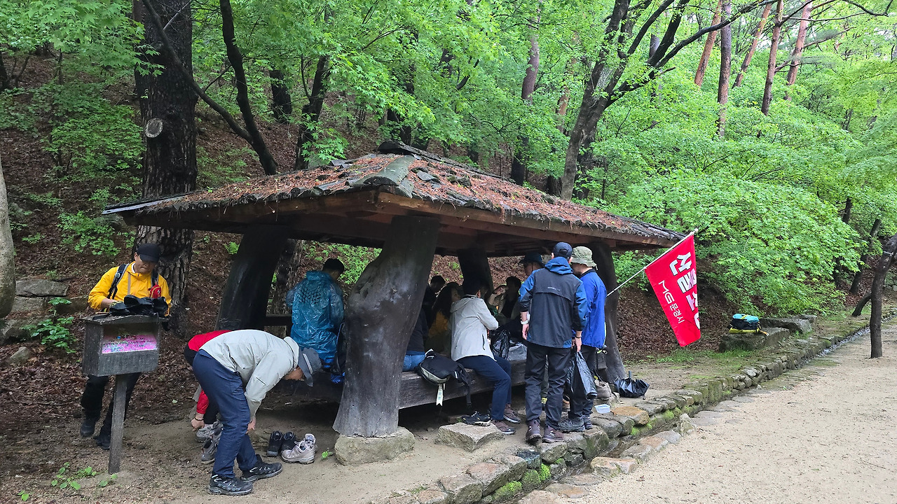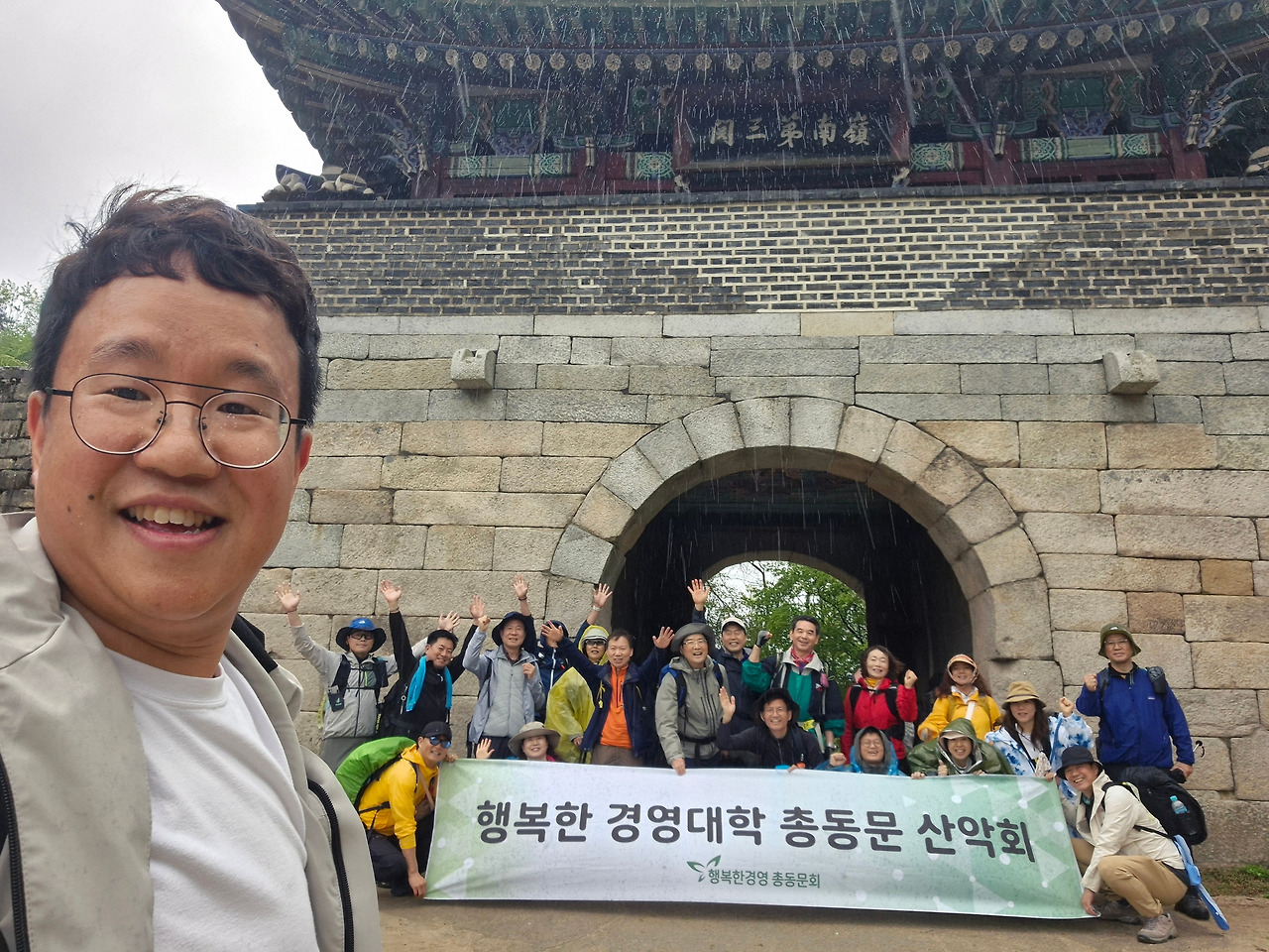 누구도 불평하지 않았다. 예상과 다르게 오히려 모든 것이 자연스러웠다. 얼굴에 묻은 빗물마저도, 젖은 옷자락조차도 우리를 하나로 만들어주는 매개였다. 1관문인 주흘관에서 단체사진은, 오늘 이 특별한 산행의 시작을 기록한 따뜻한 증표가 되었다.