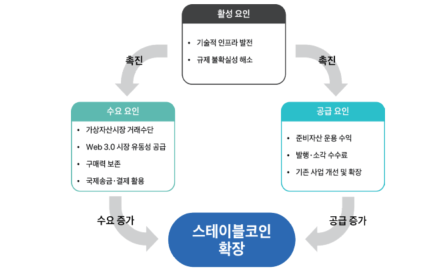 Web3.0의 부상: 디파이(DeFi), NFT, DAO 등 새로운 디지털 경제 생태계가 빠르게 성장하면서, 그 기반 결제 수단으로 스테이블코인의 수요가 자연스럽게 확대되었다.