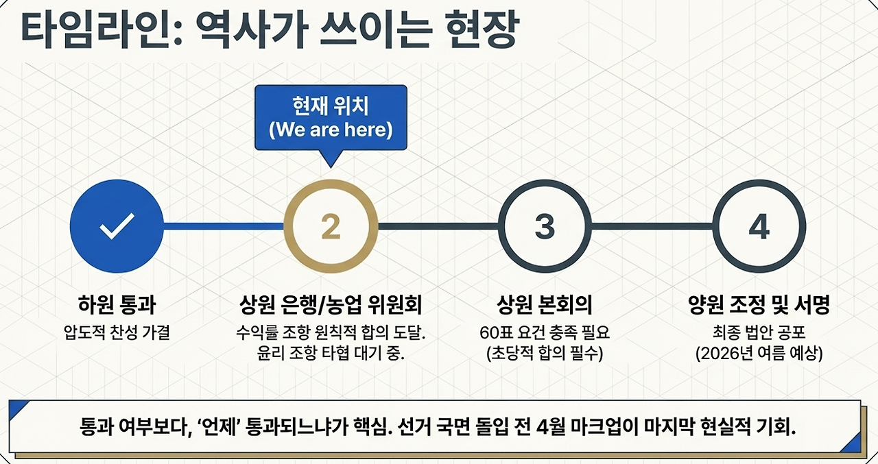 결국 이 법안의 진정한 의도는 "은행을 무너뜨리는 것이 아니라, 블록체인이라는 새로운 레일 위에 은행을 태우는 것"에 있습니다.