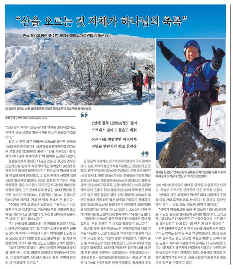 - 100대명산을 딱 2년만에 완료했는데 계획의 힘이고 자기관리의 힘이라고 생각한다. 평소에 산행지에서의 설레임을 생가하며 항상 긍정적으로 생각한다.