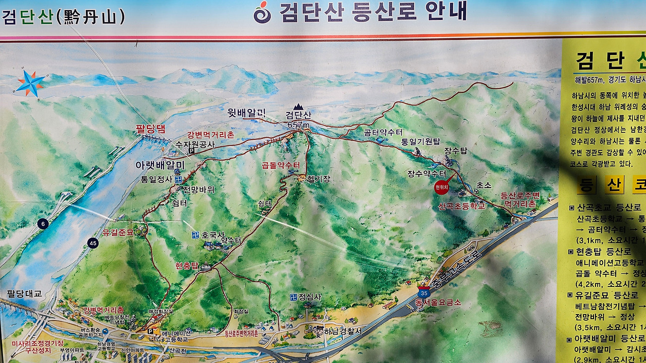 감악산은 해발 675m로 높지 않지만, 가파른 구간과 다양한 코스로 인해 적당한(?) 체력이 필요하다. 특히 감악산은 높이 오를수록 북한강과 양평 두물무리 등 산과 들 그리고 강의 전망을 즐기면서 오를 수 있는 서울에 몇 안되는 파노라마 뷰를 즐길 수 있는 곳이다.