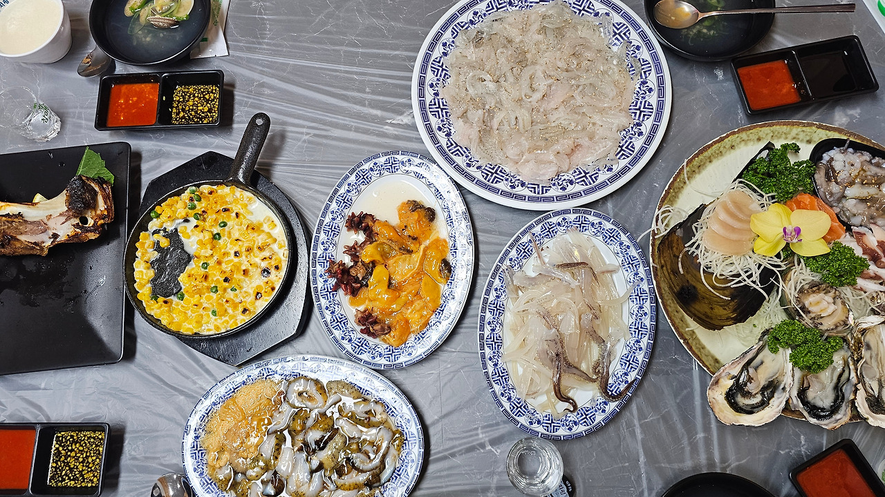 지인의 차를 타고 '하남 수산물시장'에 가서 제철 회와 해산물을 구매해서 식당에서 산행 후 뒷풀이를 거하게 즐기고 들어왔다.