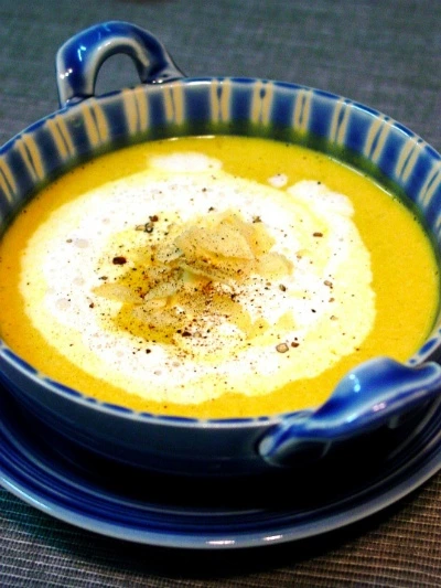 우유와 냉동실에 썰어서 넣어 둔 단호박으로 만든 단호박 수프