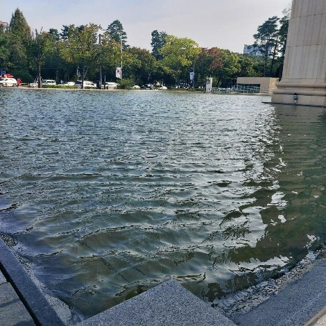 실제로는 세종대 AI관 쪽에 만들어 놓은 아주 얕은 인공 호수 같은 것입니다. 저희가 처음 가게를 열었을 때엔 저 네모난 바다가 없었거든요.