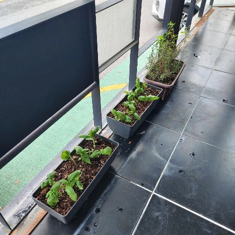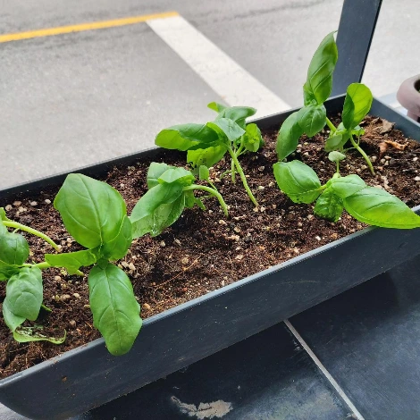 작년에도 바질을 심었었는데 이맘때쯤 아주 잘 자라다가 좀 더 지나서 겨울을 맞아 모두 생을 다했었지요. 한여름부터 늦가을까지 각종 요리의 토핑으로 그리고 페스토의 재료로 큰 역할을 했던 바질. 그런데 올해는 가게 인테리어를 하느라 한 여름을 보냈고, 정리가 다 되고서는 막상 심으려고 보니 송 씨(송충이) 일가의 습격으로 테라스가 위협을 받아 박멸을 한 후 이제서야 심게 되었습니다.