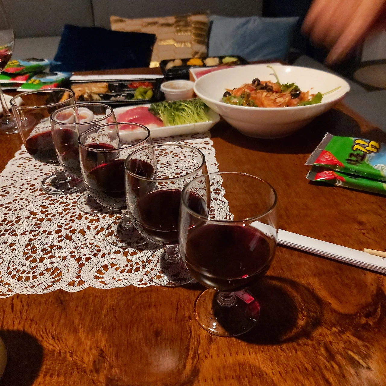 다섯 종류의 와인은 모두 눈 감고도 가려낼 자신이 있을 정도로 많이 마셔보고 익숙한 것들이었습니다만, 저는 2개, 남편은 1개의 와인에서 전혀 감을 잡지 못하고 틀리고 말았습니다. 세상에 자신할 것은 없더군요. 그래도 제가 가장 좋아하는 시라즈 (Shiraz)를 놓치지 않고 제일 먼저 확실히 짚어낸 것이 다행입니다.