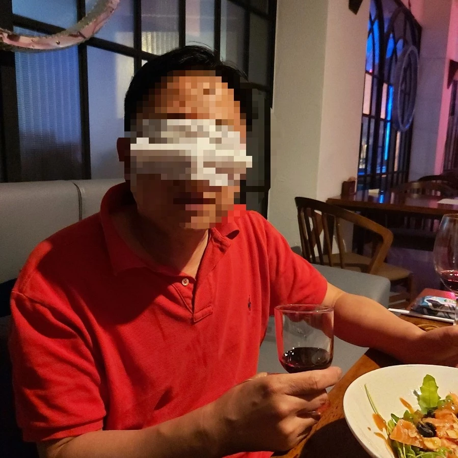 코로나 때문에 쓴 마스크는 블라인드 테이스팅을 할 때 눈가리개로도 활용됩니다. 내렸다 올렸다 아주 편하지요. 블라인드 처리 안 해도 될 것 같구먼.... 꼭 해달라고 신신당부를 해서 귀찮지만 모자이크 처리했습니다.