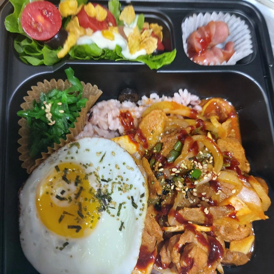 제육덮밥 단품 도시락입니다.