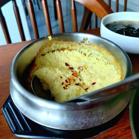 아. 식당에 가서 계란찜 나오면 정말 좋은데 덜어먹을 작은 국자를 좀 같이 주었으면 좋겠어요. 이제는 덜어먹는 문화가 많이 익숙하잖아요.