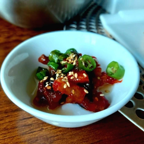 오독오독 낙지가 씹히는 낙지젓이랑 무말랭이 무침을 섞었어요. 참기름 코팅하고 고추 송송 썰어서 먹으면 꿀맛입니다. 몸에 안 좋다는 것들은 왜 이렇게 맛있는 건가요? 도대체... .