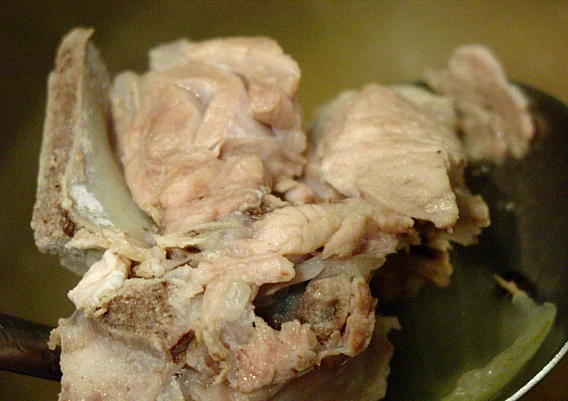 2. 삶은 뼈다귀는 찬물로 깨끗하게 씻어 지저분한 것을 떼어두고 망에 받쳐 물기를 빼고 건져둔다.