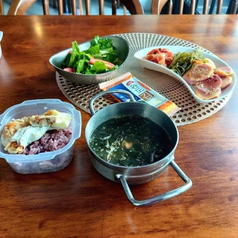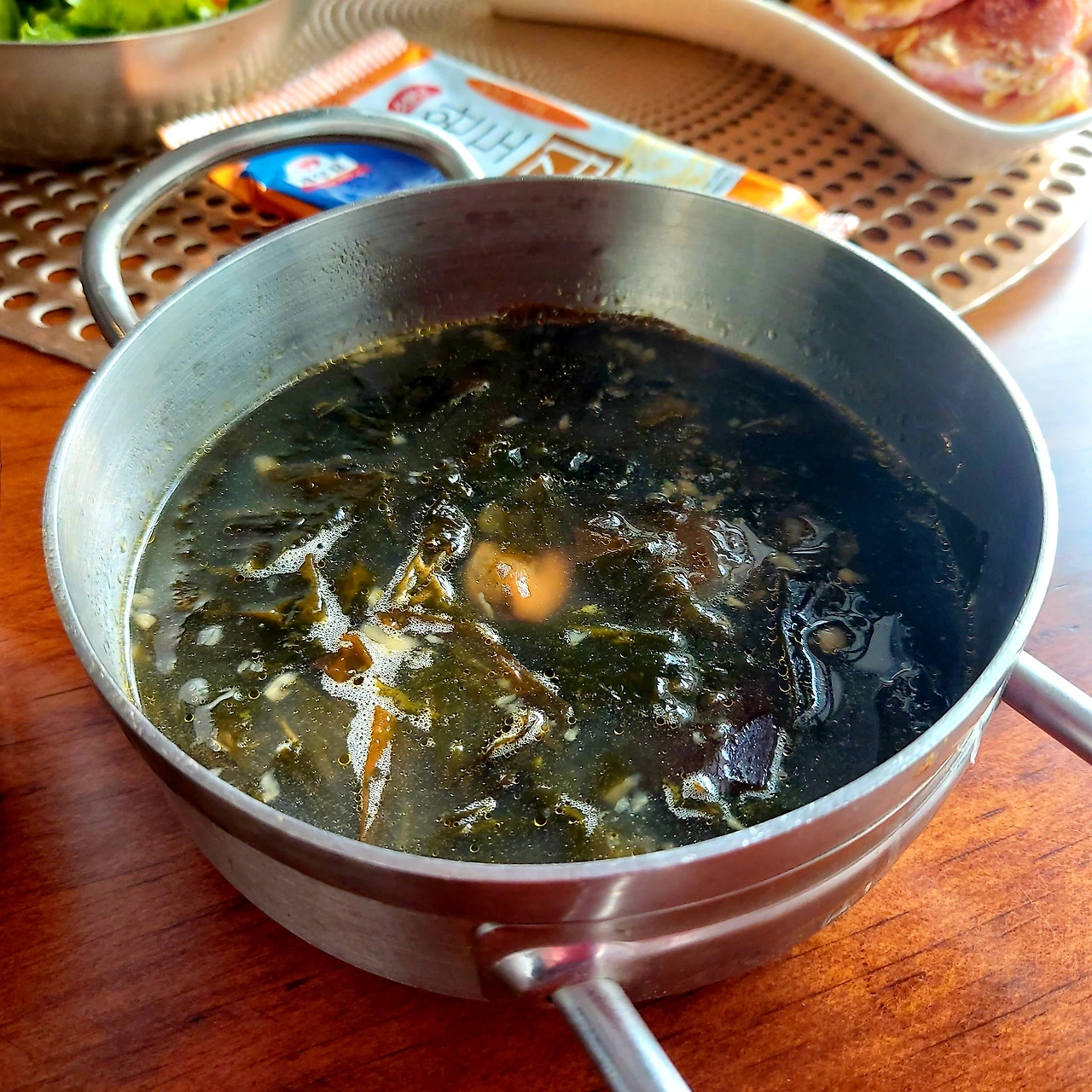 홍합 미역국, 미역줄기 볶음, 도시락 김. 트리플크라운!