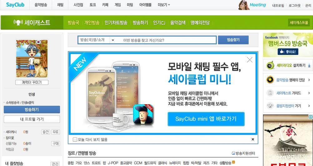 2000년 그 당시 인터넷 세상에는 게임과 채팅만이 존재했었다고 해도 좋을 듯합니다, 그중에 국내 최초로 세이클럽이 채팅 서비스를 시작하면서 음악방송을 하는 방송자키는 모두 세이클럽에 음악방송을 열고 방송들을 시작했었습니다