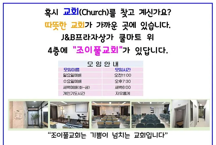 조이풀교회 유튜브 주소 : https://youtube.com/channel/UCWnhL_QxXBW59mm9zdX6KMw