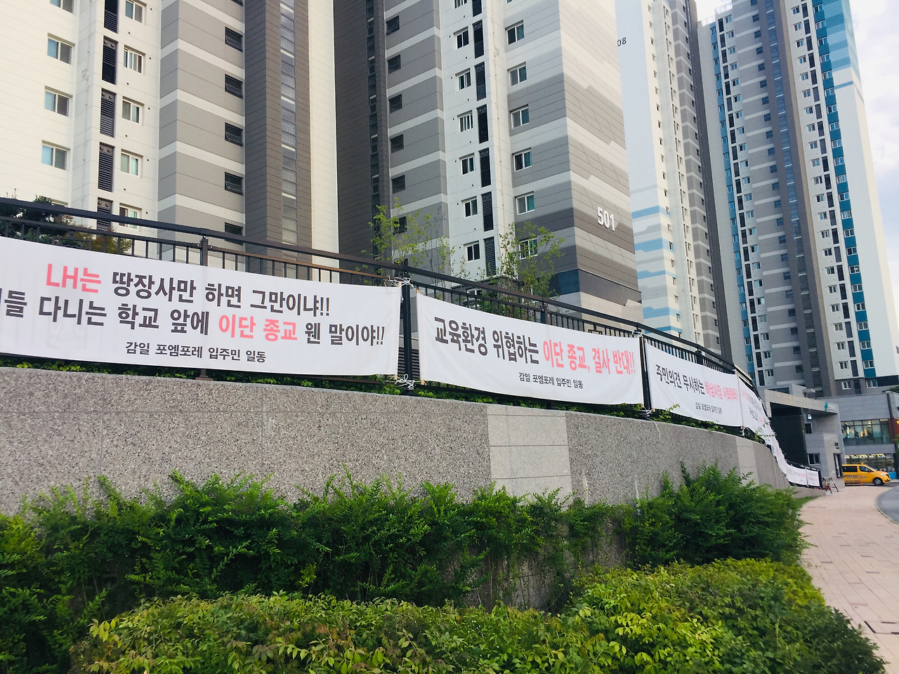 동네에 아파트 던지마다 이런 현수막을 종종 본다