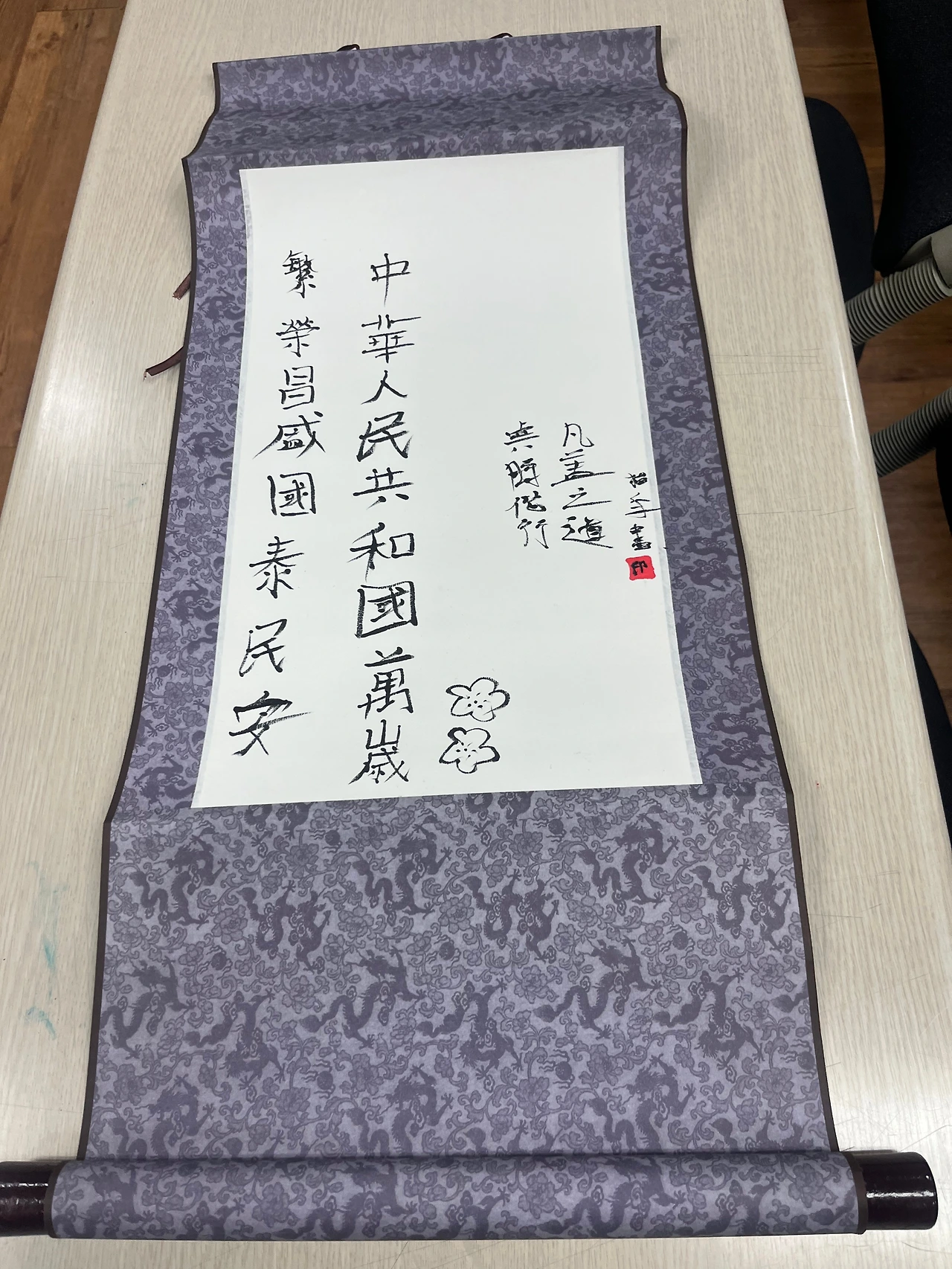 수업이 끝나고 ‘단발소녀’ 학생이 반석학교 교사분 앞에서 족자를 펼쳐 보이며 오늘은 이걸 만들었다고 자랑하고 있었다. 평소에 어른스러워 보였는데, 그런 모습을 보니 아직 그래도 청소년이라는 것이 느껴졌다. 학생들이 족자를 만들 동안 돌아다니며 이건 무슨 의미를 담은 족자인지 물어보고, 옆에 어울리는 그림도 한번 그려보라고 제안하면서 계속 말을 걸었다. 나는 중국어가 서툴고 학생들은 한국어가 서툴러서 완벽하게 소통이 이루어지지는 못하지만, 그래도 계속 소통하고자 노력하는 과정 속에서 가까워진다는 것을 느꼈다.