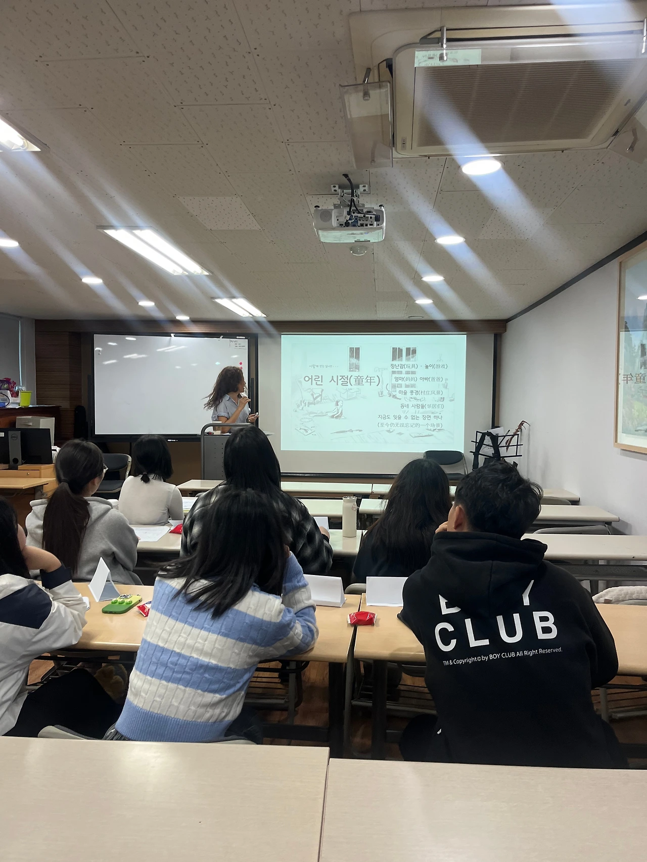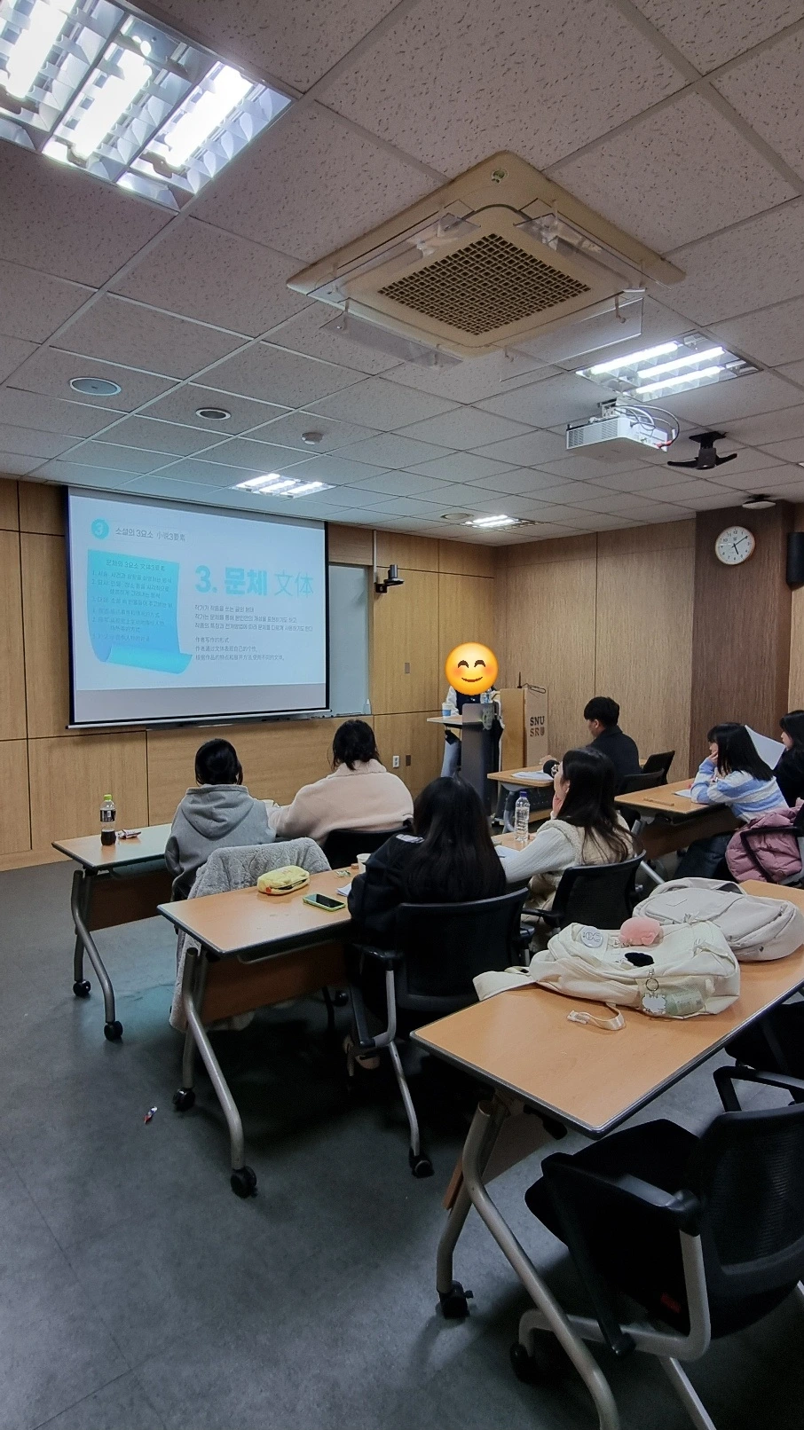 좌우간 작가님과 이런저런 수다를 나누다가 본격적으로 강연을 시작했다. 강의실로 들어오는 학생들의 약간 상기된 얼굴이 평소보다 들떠있음을 느꼈다. 낯선 분위기에 살짝 긴장한 듯 보이기도 했다. 작가님이 자리에 앉은 학생들을 찬찬히 둘러보시다가 환한 미소와 함께 인사하셨다. 그 미소가 강의실을 가득 채워서 학생들의 표정도 한결 편안해진 듯했다. 강연은 몇 가지 주제에 대해 학생들이 직접 짧은 글을 쓰고 이야기 나누는 구성으로 진행됐다.