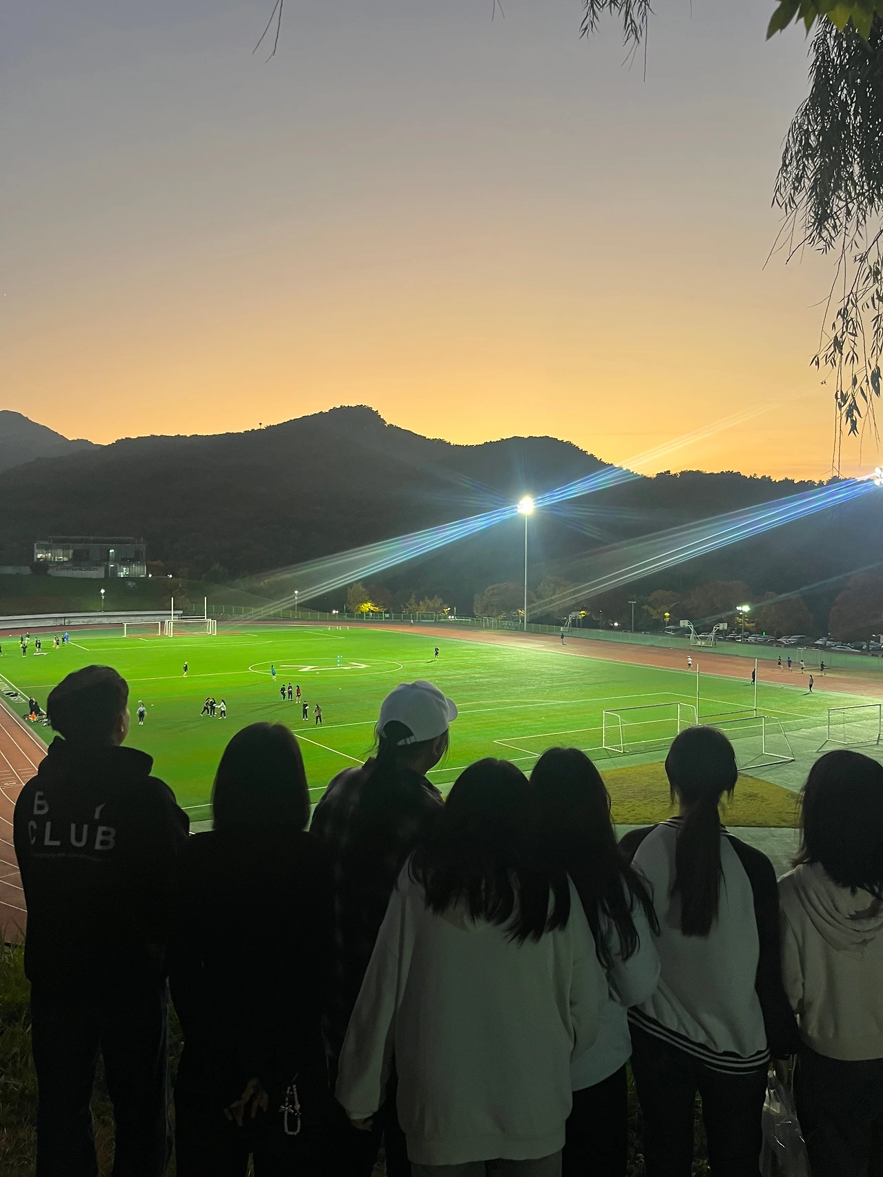 글로벌사회공헌단으로 돌아가는 길에는 해가 지고 있었다. 코스 변경으로 인해 사회대 운동장을 잔디광장에서 돌아오는 길에 보게 되었는데, 이러한 변수가 오히려 최고의 장면을 만들어줬다는 생각이 들었다. 해가 지는 하늘을 배경으로 광활한 운동장을 바라보고 있는 학생들의 모습이 그대로 사진에 담겼고, 그 사진에는 뭔가 마음을 울리는 아름다움이 담겨있었기 때문이다. 삼삼오오 모여서 서로 사진을 찍어주고 셀카를 찍는 학생들의 모습이 풋풋하고 예뻐보였다.