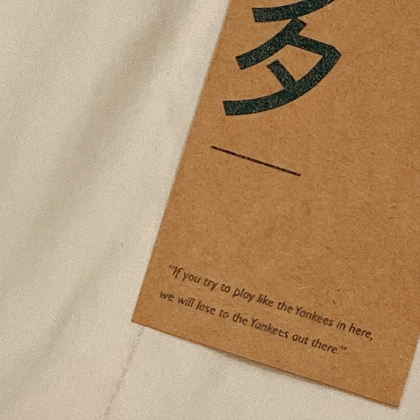회사 없는 노동자가 되면서 인사마다 손이 민망해 급조한 명함이 있다. 제작할 때 회사 로고가 없으니 여백의 미가 어찌나 심한지. 뭘로 채워야 하나 고민하다 이 일을 시작하고 제일 공감하며 본 야구 영화의 대사를 넣었다.