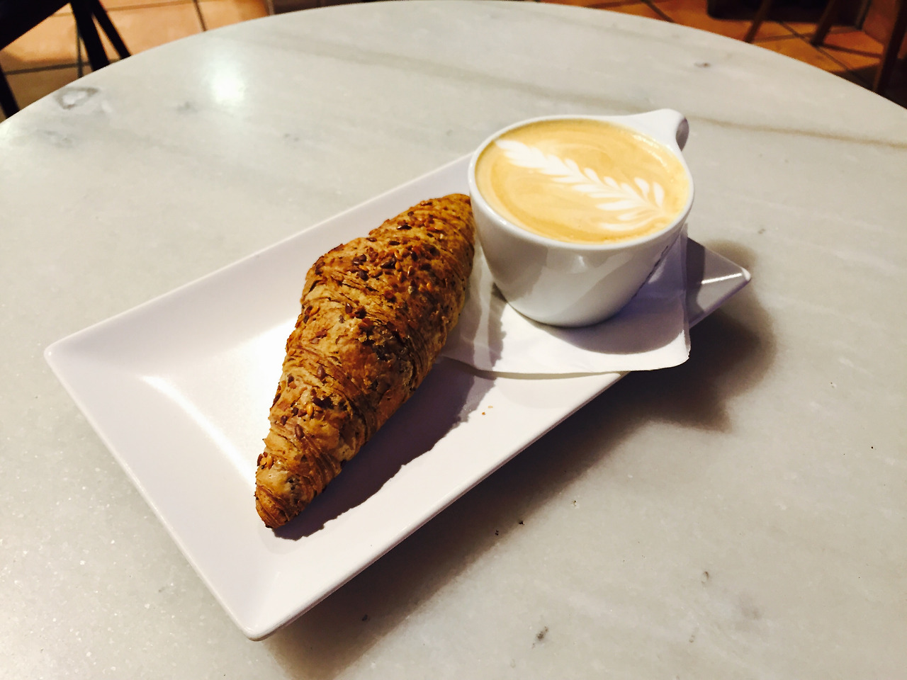 드디어 아침 세트인 카페 콘 레체와 크로와상이 나왔다.