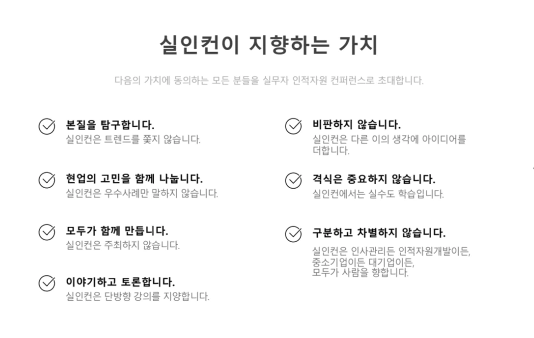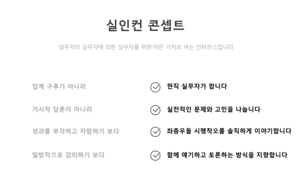 행사 준비부터 항상 강조되었던 실인컨의 콘셉과 지향 가치를 보면 왜 '실무자'가 중요했는지를 단번에 이해할 것이다.