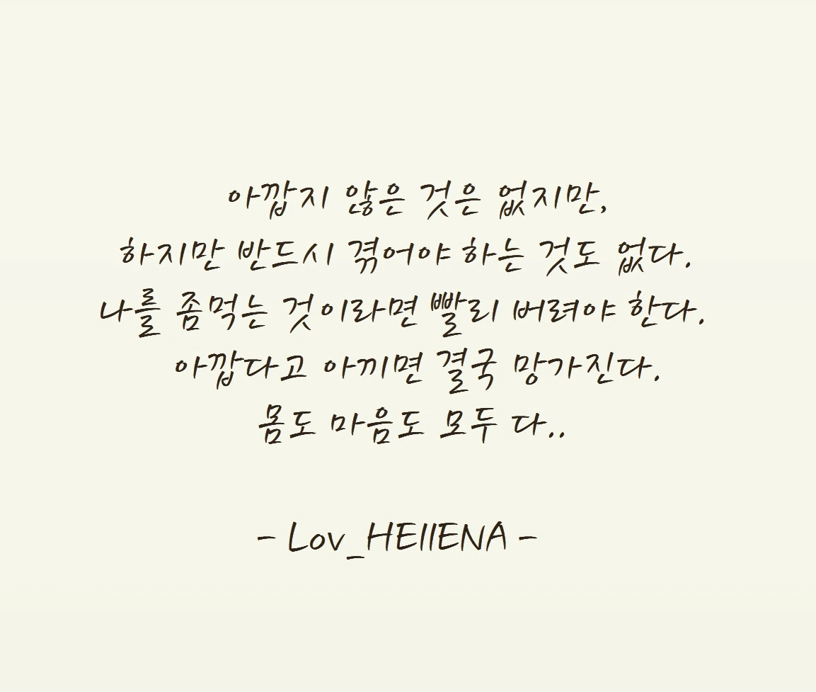 아닌것을 너무 오래 지속해서 나를 망가뜨리는 후회는 하지말자.