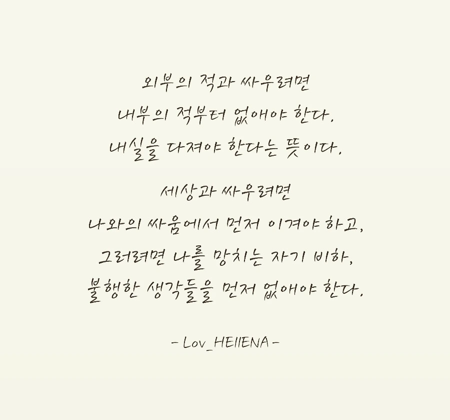 세상과 맞서 싸우려면 그리고 어떤 일에서 승리하려면