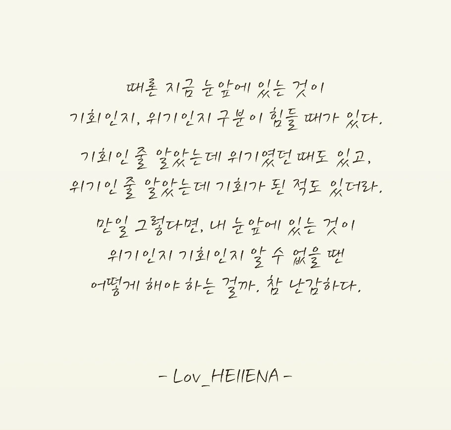 어떤게 확실한 기회이고, 위기인지 알면 참 좋겠지만,
