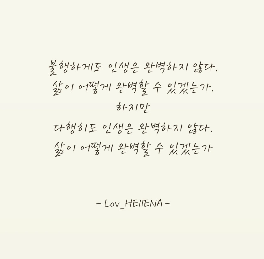다행이다. 인생이 완벽하지 않아서.. 완벽할 수 없어서..