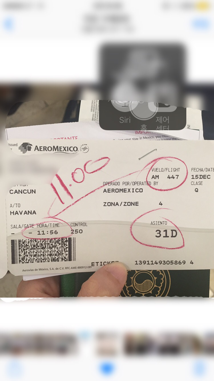 오전 11시 56분 출발 비행기. 칸쿤에서 한 시간 이십여 분의 비행 시간 후면, 드디어 쿠바에 도착한다.