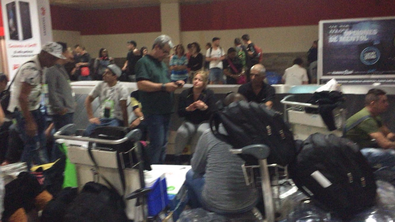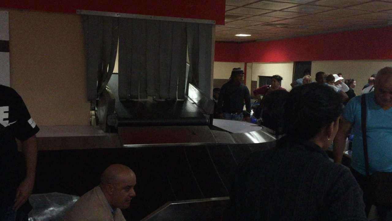# 수화물 찾는 곳에서 짐을 기다리는데, 갑자기 공항 안의 불이 꺼지며 기계도 멈췄다.