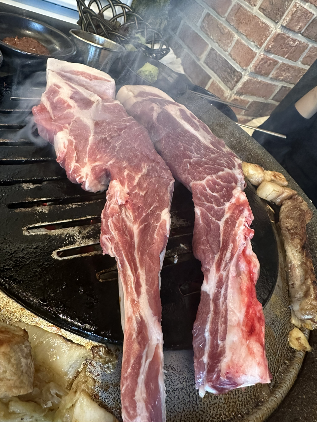 그런 곳에 선 맛집이 있다. 이름은 숙성도. 제주에서도 세 개 지점을 운용하고 있고. 대표는 매일 10kg의 돼지고기를 3년 이상 먹어가며 어떻게 숙성해야, 어느 정도 숙성해야 되지고기의 육즙을 최대한 가두면서 식감이 좋을지 연구해냈다고 한다. 들어서는 순간 숙성냉장고의 위용에 놀라고, 뼈등심과 뼈목살의 자태에 한 번 더 놀라고, 입에 들어선 육즙의 향연에 그만 감동하고 만다. 2023년 5월부터 캐치 테이블로 예약 시스템을 변경했으니 편하게 예약하고 갈 수 있다. 단, 당일보다는 하루 혹은 이틀 전 예약해두길 권한다. 피치 못할 시간 조정은 당일 불가.