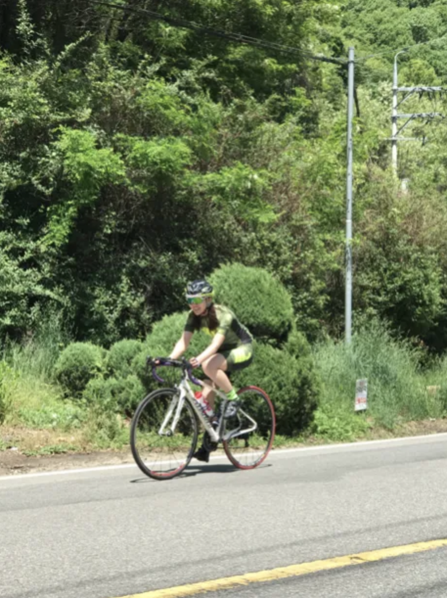 — 당연하죠. 댄싱을 하면서 힘을 더 쓰게 되는 거고, 그 힘을 더 쓴 만큼 댄싱을 마치는 순간 심박은 오를 수밖에 없어요. 댄싱에서 다시 안장 위 앉은(시팅) 자세로 돌아오면 숨을 더 잘 다스려야 해요. 복식호흡 하듯이 들이켰다가 내 쉬기를 잘 반복하면 심박은 다시 안정되고요. 저흰 평로라를 타면서 이 호흡과 같이 연습하는데 누나도 해 보시면 금세 늘 거예요.